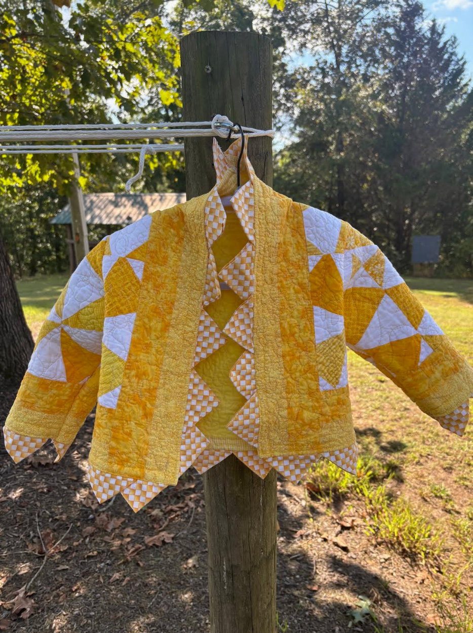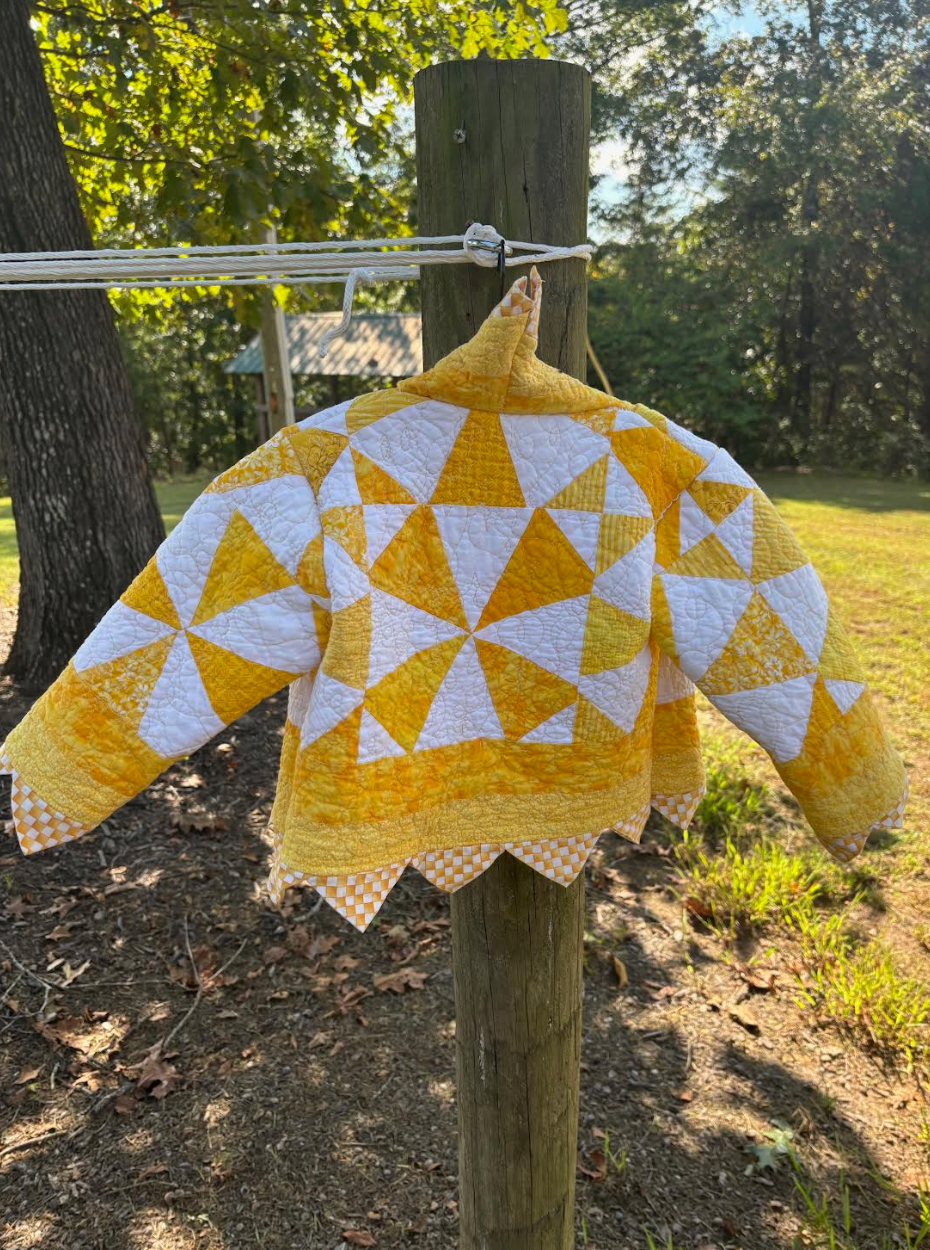 All jackets are constructed from both vintage and antique quilts where the fabric can sometimes show this. With our mission to intentionally repurpose these well made textiles, sometimes the fabric can have light discoloration or wear. They are well made, and well loved pieces of our heritage. All of our quilts are washed in advance and we recommend to dry clean in the future.
