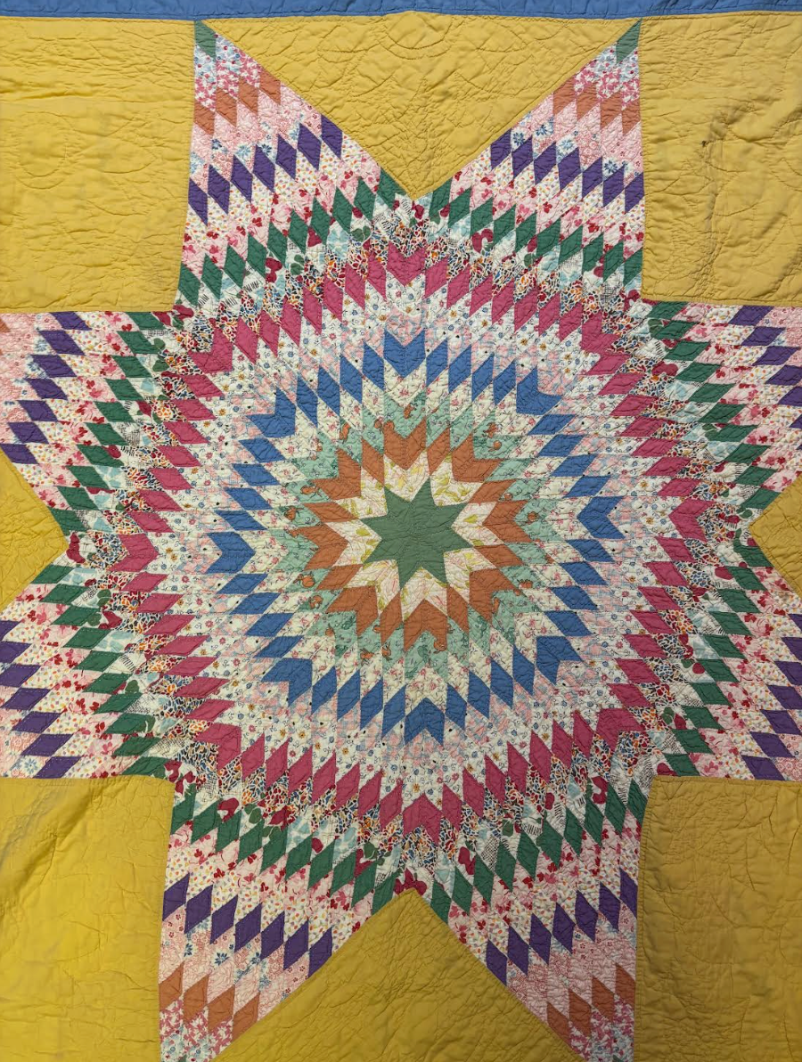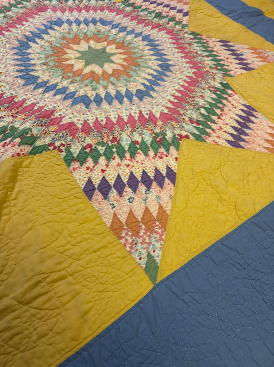 All quilts are either vintage or antiques where the fabric can sometimes show this. With our mission to intentionally repurpose these well made textiles, sometimes the fabric can have light discoloration or wear. They are well made, and well loved pieces of our heritage. All of our quilts are washed in advance and we recommend to dry clean in the future.